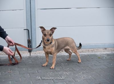 Bąbel to niewielki, beżowy piesek o krótkiej, gładkiej sierści i delikatnej, drobnej budowie. Ma około 7 lat i waży niespełna 8 kg, ale jego serce jest zdecydowanie większe niż on sam ❤️ Przez wiele lat żył w spokojnym mieszkaniu, u boku swojej ukochanej opiekunki, z którą tworzył prawdziwą, bliską relację. Był domownikiem w pełnym tego słowa znaczeniu – kochanym, ważnym i zawsze blisko człowieka.