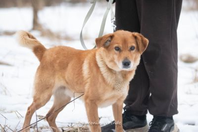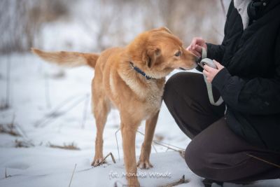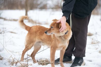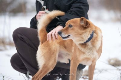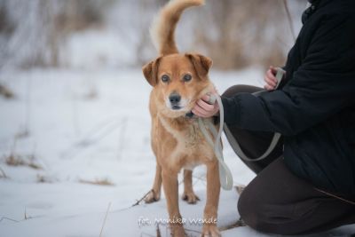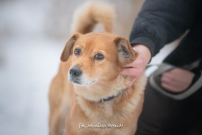 Smyk ma około 5 lat i waży około 15 kg, więc jest idealnym psem średniej wielkości – takim, który odnajdzie się zarówno w domu z ogrodem, jak i w mieszkaniu. To piękny rudasek o gęstej, miękkiej sierści, jaśniejszym brzuszku i uroczym pyszczku, obok którego naprawdę trudno przejść obojętnie 🥰. Jego mądre, spokojne oczy patrzą na człowieka z ogromną ufnością i ciekawością świata 🌍. Gdy widzi kogoś znajomego, jego ogon wędruje wysoko do góry, a cały Smyk aż promienieje radością – to znak, że coraz bardziej wierzy ludziom i cieszy się z ich obecności.